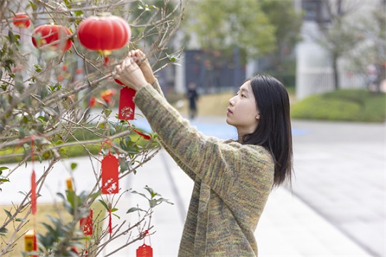 最美還是中國紅。寫句愿望和祝福,掛滿枝丫;掛上火紅的燈籠,讓團圓的喜意,傳遞春的喜訊;貼上喜慶紅春聯,守護四季平安。