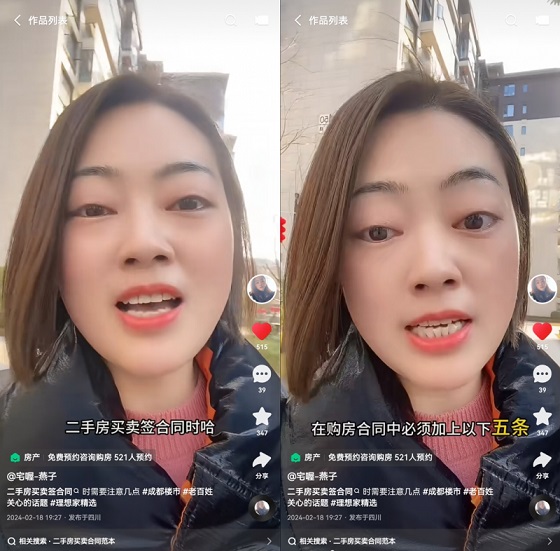 2023年10月,燕子正式轉行成為房產主播,燕子通過@宅喔-燕子的快手賬號,兩個月成交3套房產,GTV超過300萬,收獲了超萬名快手老鐵的信任。