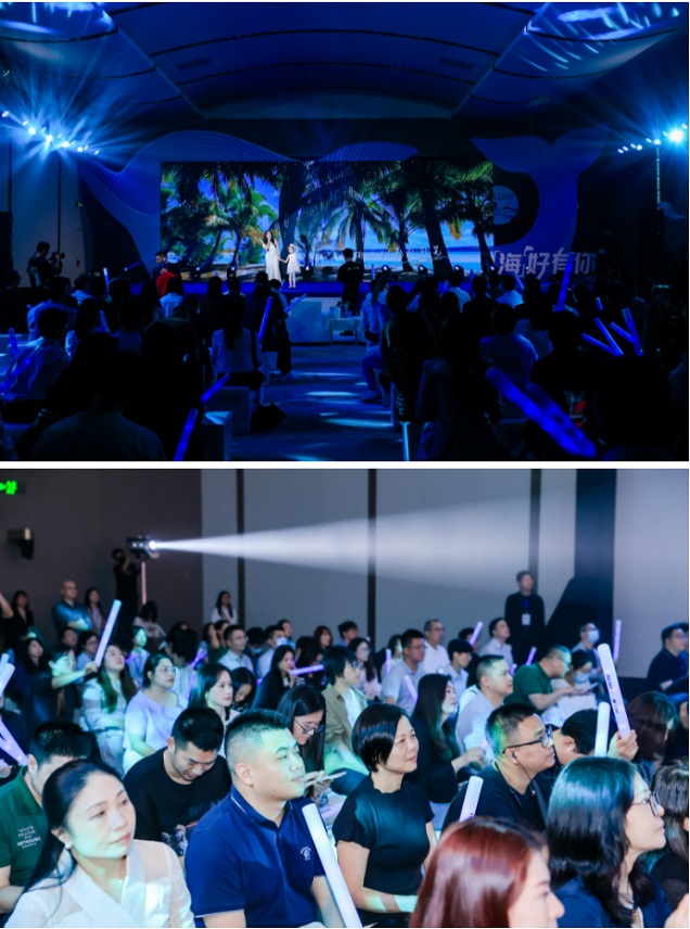 “聽海風(fēng)吹過我的耳旁,海浪像云朵的形狀,椰林樹影輕輕晃,這片海像畫一樣……海好有你,在我身邊,夢在海的那邊,一定會(huì)實(shí)現(xiàn)……”活動(dòng)現(xiàn)場,國貿(mào)地產(chǎn)AI海洋公益主題曲《海好有你》正式發(fā)布。