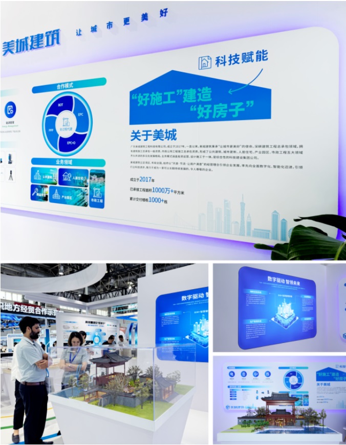 “綠色智能建造”展區(qū)依托美城建筑打造,重點(diǎn)展示公共建筑、城市更新、人居住宅、產(chǎn)業(yè)園區(qū)、市政工程等領(lǐng)域的綠色智能建造能力。