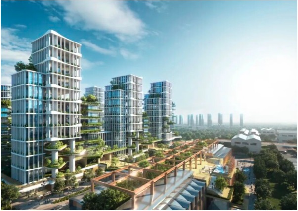 以科技、歷史、綠色為載體,通過嵌入多元復合功能板塊、綠色滲透打破自然與城市的界限、智慧社區底座數字化搭建等設計手法,打造產業融合、文脈傳承、居住升級、個性與品質的復合社區,符合新時代住房高質量發展“適用、經濟、綠色、美觀”的建筑方針。
