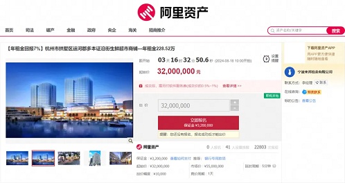該標(biāo)的是有一千多平面積的臨街旺鋪,將于8月18日在阿里資產(chǎn)房產(chǎn)平臺拍賣,七折起拍,參拍需繳納保證金320萬元,加價幅度為10000元或整倍數(shù)。