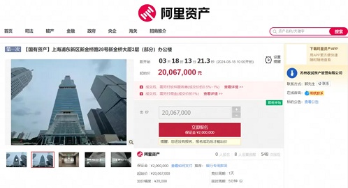 該標(biāo)的起拍價約2006萬元,將于8月18日在阿里資產(chǎn)房產(chǎn)平臺開拍,參拍需繳納保證金200萬元,加價幅度為20000元或整倍數(shù)。