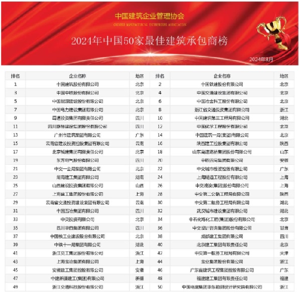 在經濟發展的浪潮中,建筑業始終是國家建設的中流砥柱。近日,由中國建筑企業管理協會隆重發布的“2024年中國建筑業綜合實力100強榜暨中國50家最佳建筑承包商”,這不僅是對建筑企業的一次高度認可,更是為行業發展樹立了新的標桿。