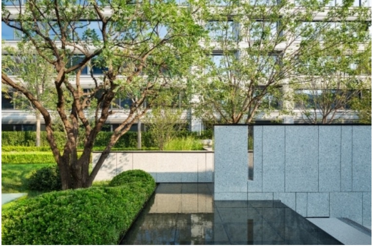 項(xiàng)目設(shè)計(jì)采用垂直立面搭配新材料建制的歇山式屋頂,文化氣息中自帶科技感。建筑外墻沿用標(biāo)志性的灰調(diào)全石材,使用比干掛更穩(wěn)固耐久的背栓工藝固定,與大面積LOW-E超白玻深度融合,窗墻比和立面平整度高,采光充足、均勻。