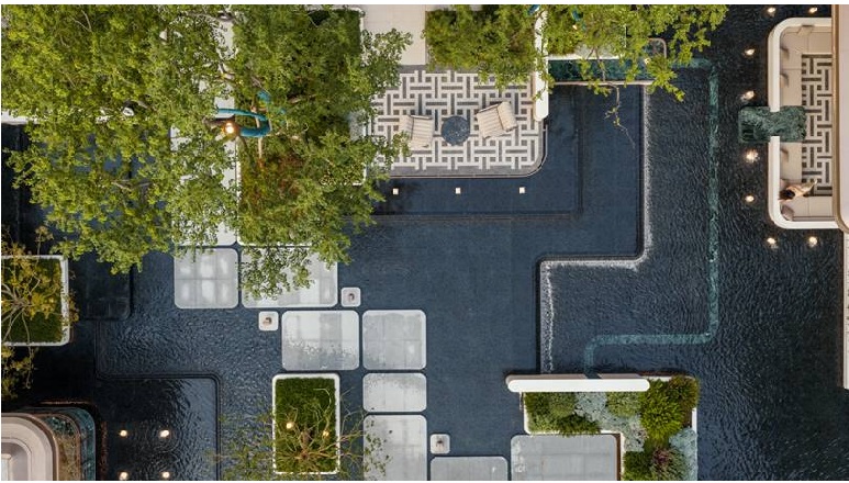 看細節,大地沉淀歷久彌新的「永恒感」。摒棄常規的涂料與瓷磚,不惜成本采用多種臻稀石材,打造從建筑外立面到景觀園林的完整石材體系。從會所大堂的水刀拼花,到園林節點的奢石鋪裝,每一處細節都經過多道工藝打磨,最終呈現堪比藝術館的質感體驗。