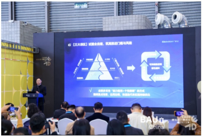 2025年11月5日至8日,BAU China國際建筑科技博覽會在上海新國際博覽中心舉行。廣聯達科技股份有限公司副總裁、數字建筑研究院院長劉剛受邀出席Beyond AI數字化與AI主題論壇,發表《產業AI賦能中國建造智能化躍遷》主題演講。他指出,“人工智能+建筑”正深刻影響并重塑建筑產業,然而當前行業AI應用推進仍陷于多重誤區。要實現真正突破,關鍵在于發展“產業AI”——將通用AI與建筑領域知識、行業數據及工程軟件深度融合,使AI應用從探索“可能性”轉向提升“確定性”。同時,劉剛圍繞建筑工程大模型與AI平臺如何支撐項目應用場景和智能化實踐進行了分享,重點介紹了廣聯達以“一橫一縱一AI”為核心的戰略布局如何推動產業AI在多個業務場景及大量項目中落地應用,賦能行業加速實現智能化躍遷。