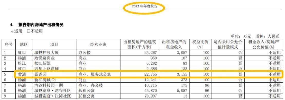 (城投控股2022年年報,露香園用以出租的面積為22755㎡)