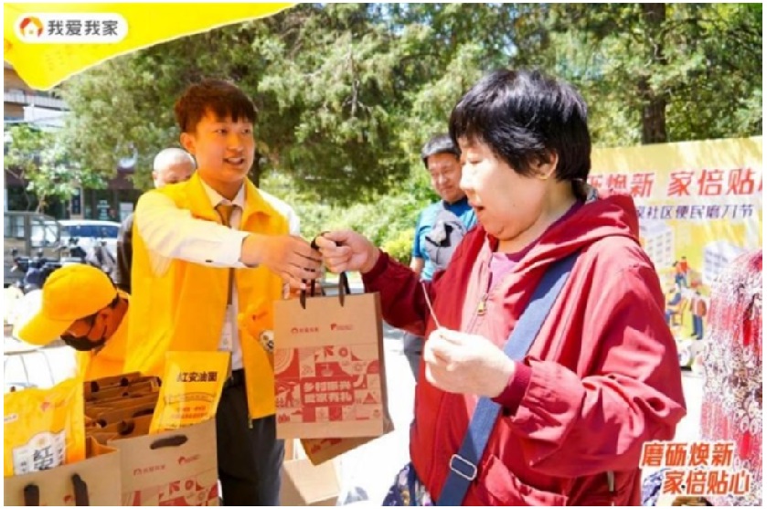 以我愛我家北京公司為例,近三年來其依托近800家社區門店構建的服務網絡,從便民服務、社區融合到社區關懷,為居民提供了全方位的支持。在便民服務上,不僅推出打印、磨刀、除蟑等“六大便民”服務,還針對社區老人與兒童的需求提供理發等服務;在社區融合上,我愛我家如同社區“黏合劑”,持續為居民搭建鄰里互動平臺,除了多年來堅持在端午節組織居民包粽子掛艾草等傳統活動,近年來還發起社區“健型計劃”“親子歡樂運動匯”“音樂講堂”等活動,為居民創造鄰里交流契機;在社區關懷方面,我愛我家的門店還化身“暖心驛站”,全年無休為戶外工作者提供飲水、熱飯、充電等服務。