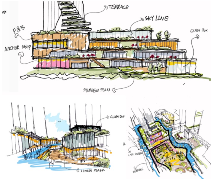 在租賃區、商業區和保障房住區構建多個景觀節點,打造家園、公園、樂園一體的三園合一公園城市。