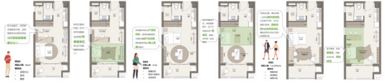 項目將實行統一的交付標準,根據設計指標,我們引入了折疊、移動及模塊化家具的概念,這些家具元素共同構成了一個靈活可變的區域系統。該系統允許租戶根據自己的使用習慣和具體場景需求,自由地進行DIY設計,從而打造出專屬于自己的個性化生活空間。