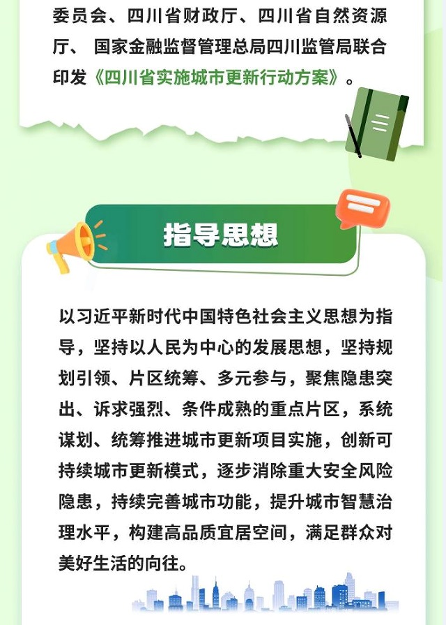 住房城鄉建設廳更新處相關負責人表示,《行動方案》堅持以人民為中心,規劃引領、片區統籌、多元參與,推動四川城市更新工作系統謀劃、統籌推進,持續完善城市功能,提升城市智慧治理水平,為人民群眾創造更加安全、宜居、綠色、智慧的城市環境。