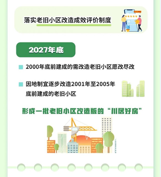 《行動方案》明確,到2027年底,四川建成50個城市更新重點片區樣板,支持各地以更新重點片區為載體整合資源、集成項目。到2030年,城市更新工作機制、支持政策、技術方法和管理制度更加完善,可持續城市更新模式基本形成。