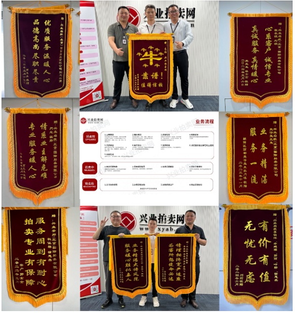 在服務流程上,興業拍賣網真正做到了從拍賣前期、中期到后期的全鏈條細致服務。前期為客戶精準篩選標的、深入分析市場行情;中期全程陪同參拍、實時解答疑問、提供專業策略支持;后期協助辦理過戶、交稅等繁雜手續,讓客戶省心又省力。專業貼心的服務贏得了客戶的廣泛好評,辦公室墻上懸掛的一面面錦旗,正是客戶對興業拍賣網 “專業高效”“服務周到”“盡職盡責”的最佳認可,也成為企業持續提升服務品質的動力源泉。