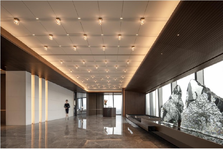 璟喜打造起承轉(zhuǎn)合的入戶禮制,從進入的一刻起,便將當(dāng)代高凈值人群含蓄、內(nèi)斂、沉穩(wěn)的品格呈現(xiàn),15.5米奢闊挑高大堂,45層云端大堂,23米巨幕落地窗,云頂之上,灣區(qū)盛景列陣迎賓。最多享8臺全獨立私密電梯入戶,舉步間高級審美趣味環(huán)繞,藝術(shù)氛圍相隨,隨著行進過程不斷變化場景;無界化的室內(nèi)空間設(shè)計實現(xiàn)對城市地標(biāo)群的全景收攬,在時代恒景中感受內(nèi)心的寧靜與放松。