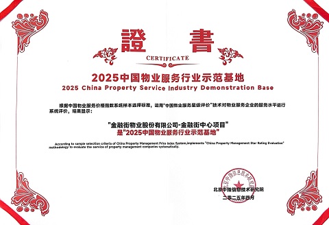 近日,北京金融街第一太平戴維斯物業管理有限公司在管項目金融街中心項目榮獲了由業內權威機構——北京中指信息技術研究院頒發的“2025物業服務示范基地”榮譽稱號。