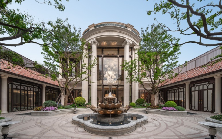建發港務·宸啟瑞湖創新采用四代宅設計,以鼓浪嶼百年古厝為靈感,采用“一軸七院”布局,融合中西文化元素,如閩南紅磚厝與歐式柱廊、南洋花窗等,擁有5300 m²核心景觀中庭。戶型涵蓋243~366m²大面積空中墅,配備270°環幕橫廳、一線湖景資源稀缺。地下3500 m²會所對標超星級酒店。