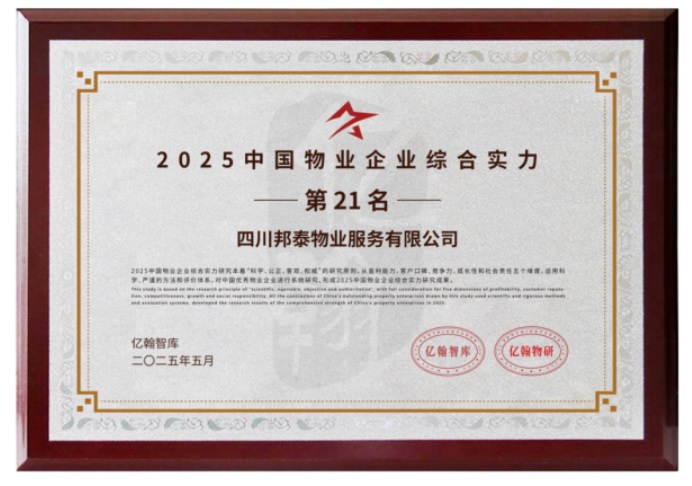 邦泰深知,真正的品質(zhì)生活不僅源于好房子,更取決于交付后長期的物業(yè)服務(wù)體驗(yàn)。邦泰物業(yè)以連續(xù)多年客戶滿意度超過95% 的卓越表現(xiàn),在2025年榮獲全國物業(yè)企業(yè)綜合實(shí)力第21名,印證了集團(tuán)從“好產(chǎn)品”到“好生活”的承諾兌現(xiàn)。