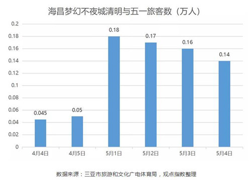 另外,國內(nèi)熱門旅游城市三亞,其景區(qū)景點、鄉(xiāng)村旅游點在5月1日-4日,累計接待游客14.78萬人,已恢復至去年同期水平的30.22%。