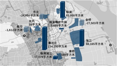 上海優質商務園區各商圈凈吸納量(2020年前三季度)