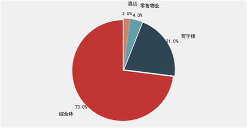 分物業類型看,一季度大宗交易中綜合體和寫字樓占到總交易額度的分別為73%和21%。表明在北京寫字樓相對穩健的基本面支持下,辦公用途資產依然是投資者較為關注的物業類型。