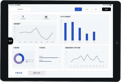 最后,inSolution支持客戶深層數據挖掘功能。依據前端實時帶看數據的采集用戶行為數據,完成看房報告分析、戶型選擇統計,沉淀用戶真實期望、診斷熱門戶型和難租戶型,進而助力產品升級和招商策略優化,最終提升招商帶看轉化率。
