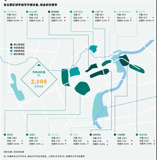 第一季度,核心商務區的平均租金繼續環比微跌0.14%至每天每平方米人民幣10.81元。核心商務區各個細分市場表現不一,小陸家嘴及南京西路租金分別環比微跌0.37%和0.34%,而淮海中路租金環比微升0.67%。由于不少金融機構和科技企業的遷入,新興市場的寫字樓租金有明顯上漲。北外灘、外灘金融帶以及前灘的租金分別環比上漲1.7%、4.67%和5.83%。