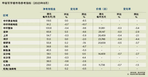 鑒于市場氣氛疲軟,港島區(qū)寫字樓的租金繼續(xù)下跌。港島區(qū)整體凈租金按月下跌0.2%,年初至今跌幅達3%。在主要的寫字樓市場中,中環(huán)及金鐘的寫字樓租金跌幅最大,按年下跌4.4%。