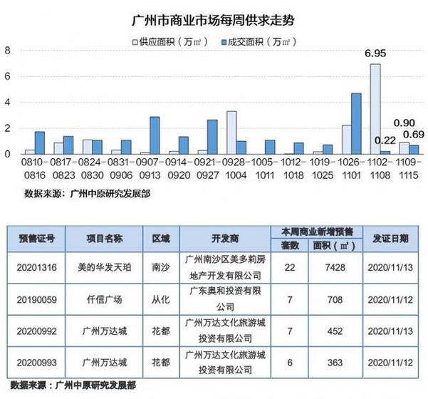 日前,廣州中原研究發布部發布了上周廣州市場商業周報(2020年11月09日—2020年11月15日 )。數據顯示,商業市場網簽系統恢復,商業成交低位回升。