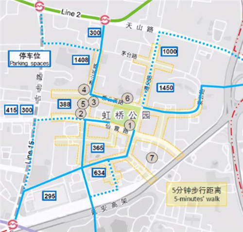 以上海古北虹橋商務區的咨詢建議為例,仲量聯行創新性地提出建議:從區域內原先欠缺通透性、功能單一的虹橋公園入手,將其強化為整個區域內的新社交核心,并圍繞梳理周邊的商業資源。