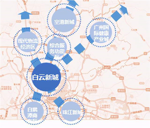 在廣州的白云新城板塊新的愿景圖中,立足臨空產業、生態文化和都會服務的三方融合,構建了一個個嶄新的以航空航天為主題的商業社區生活場景。