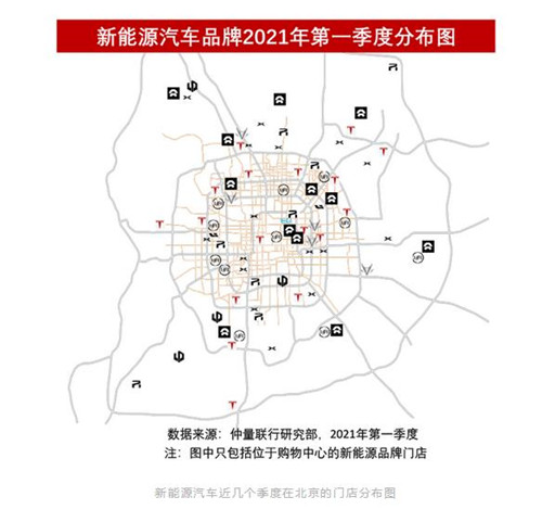 自北京市場2020年6月份新增兩萬個新能源牌照后,新能源汽車行業開始強勢增長。與特斯拉的開店策略類似,新能源車企最初開店的首選都是形象較好,定位相對高端的購物中心和商場。不同于4S店的售賣方式,新能源汽車品牌多在購物中心開設展廳或體驗店,面積多在100-300平方米,也有上千平方米的旗艦門店。在快時尚品牌大量撤鋪縮減線下門店的背景下,新能源汽車展廳成為購物中心的新晉主力店,為購物中心的日常運營帶來新的活力: