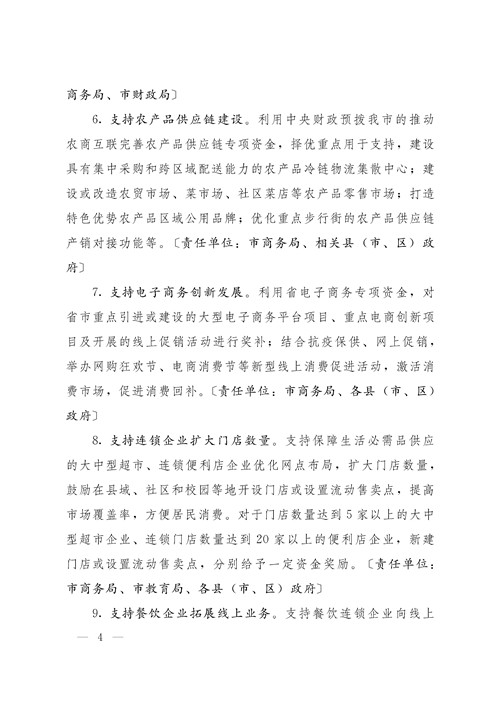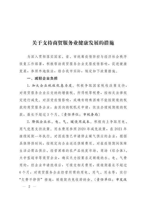 《措施》提出,對減免租戶房租的大中型商場(綜合體),給予房租減免補貼。對租用行政事業單位公有房屋的商貿企業,實行租金“一免一減半”政策,免收1個月房租,減半征收1個月房租。按照我市減免服務業小微企業和個體工商戶房租的相關政策,對承租商戶減免租金的大中型商場(綜合體),市財政按其租金減免總額,給予每家企業一定比例的資金補貼。.