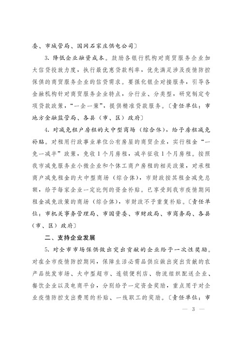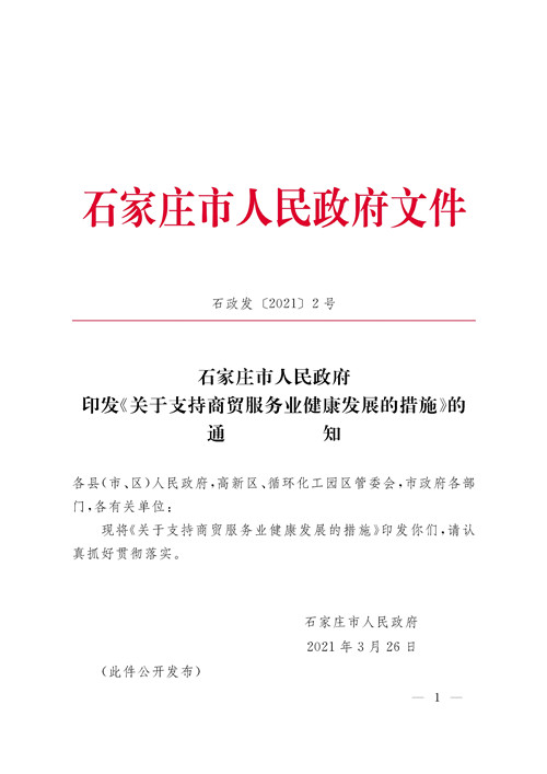 房訊網訊 近日,石家莊市政府印發《關于支持商貿服務業健康發展的措施》,從減輕企業負擔、促進消費、優化營商環境等多方面制定15條政策措施,積極促進企業健康發展。其中,對達到一定條件的大中型超市、便利店、餐飲企業等,給予一定資金獎勵。