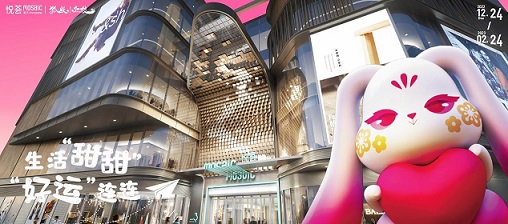 重慶悅薈1/3號(hào)門廣場(chǎng)外5米高的聯(lián)名IP定制兔,既是IP形象的抓取,又是新年兔年形象的昭示;