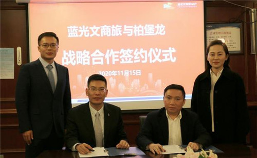 2020年11月15日,藍光文商旅與柏堡龍合作簽約儀式在北京隆重舉行,雙方正式達成戰略合作,打造“商業內容服務+商業經營平臺”的商業生態。柏堡龍董事長陳偉雄、總經理陳娜娜,藍光文商旅董事長兼總裁張剛等嘉賓出席簽約儀式并完成簽約。