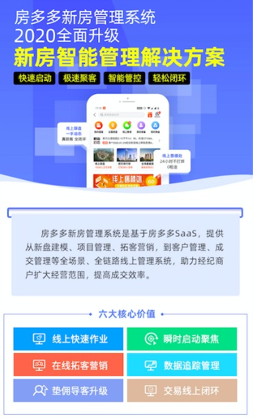 該新房管理系統(tǒng)是基于多多賣房SaaS,為經(jīng)紀(jì)公司打造的從新盤建模、項(xiàng)目管理、拓客營銷,到客戶管理、成交管理等全場景、全鏈路的內(nèi)部管理系統(tǒng)。此次管理系統(tǒng)迭代后,新增樓盤可直接關(guān)聯(lián)房多多樓盤數(shù)據(jù)庫中所有樓盤,新房動態(tài)提醒可以實(shí)施觸達(dá)全公司經(jīng)紀(jì)人,同時強(qiáng)化新房營銷獲客和在線成交管理等功能。同時,一二手房模塊打通,經(jīng)紀(jì)商戶不再需要頻繁切換系統(tǒng),從此可實(shí)現(xiàn)快速啟動、極速聚客、智能管控和輕松閉環(huán)。