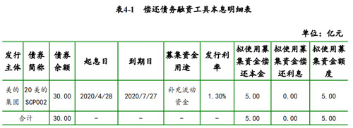 據悉,本期債券募集資金中25億元用于補充集團流動資金;5億元用于償還債務融資工具本息。具體如下: