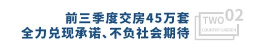 房企流動性危機導致各地出現項目停工、爛尾等情況,“交付力”成為房企競爭力的重要體現。據統計,2022年前三季度,碧桂園集團連同其合營公司和聯營公司已在30個省份267個城市910個區(縣)累計合同交付約45萬套房屋,累計交付面積超5300萬平方米,遙遙領先于同行。