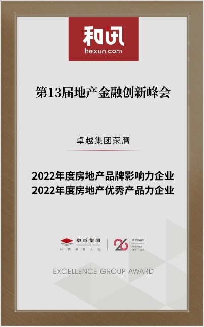 卓越集團憑借其強大的產品力和影響力,榮膺“2022年度房地產品牌影響力企業”、“2022年度房地產優秀產品力企業”兩項大獎,而面對復雜多變的市場環境,卓越集團還將繼續秉持“追求卓越、不斷超越”的初心,全面塑造產品的核心競爭力,持續踐行企業社會責任感,為城市生長、居民美好生活創造更多價值。