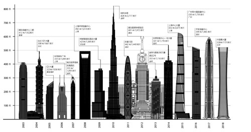 經過幾十年的建設,中國早已不缺摩天大樓,與全球其他國家相比,在數量上更是遙遙領先。世界高層建筑與都市人居學會( CTBUH )發布《2018年高層建筑回顧報告》顯示,2018年,中國各地共建成88座200米以上的摩天大樓,占全球總數的61.5%;全球200米及以上的高層建筑總數達1478座,中國就擁有678座,占全球總數的45.9%。