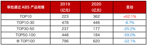 房企ABS審批通過規(guī)模(億元)2019VS2020