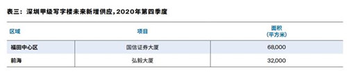 2020年第三季度,華潤前海中心T2及嘉里前海商務中心交付上市,帶來21.6萬平方米的新增供應。深圳甲級寫字樓市場存量上升至763.2萬平方米,凈吸納量為19.8萬平方米。
