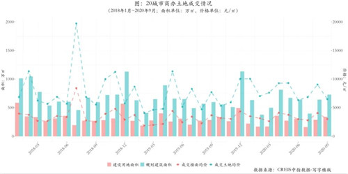 三季度,20城市商辦用地推出節奏放緩,推出土地和樓面價格均環比下跌,同比上漲;成交面積環比大幅下降,成交土地均價同比上漲,環比下跌;土地出讓金同比增長14.01%,環比下降24.38%,平均溢價率升至1.82%。從企業拿地情況來看,前三季度,國內69家企業共競得331宗商辦用地,拿地面積1235.93萬㎡,金額757.47億元,TOP10企業拿地面積和金額均超六成。