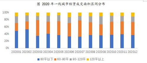一線城市租客消費降級顯著,月均支出和租住面積均縮減。根據貝殼研究院數據,2020年,一線城市租客套均支出同比下降5.8%,其原因一方面是由于租金水平的下降,另一方面則是租客租住面積下降。2020年一線城市60-90平米的房屋成交占比同比去年提高了3.7個百分點,60平米以下的房屋占比則基本持平,90平米以上的房屋占比均小幅下降。部分租客因受疫情的影響,會選擇工作周邊的小戶型房屋,以減少公共交通的出行,租金成本下降則推動了這種趨勢。