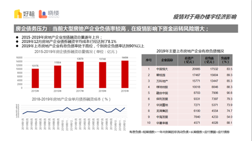 在供給端上游,當前大型房地產企業負債率普遍較高,在疫情影響下資金運轉風險增大。