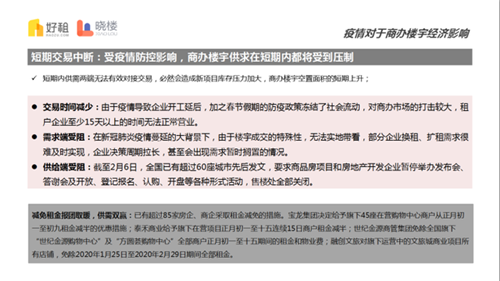 近日,曉樓數據服務平臺特別制作了《風月同天 勠力同心——“抗疫” 下的商辦樓宇經濟》專題,從對比非典時期經濟環境、疫情對行業影響、政策梳理等多個層面進行了全面解讀。