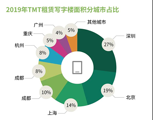 2019年,TMT、金融業和專業服務業累計占中國寫字樓租賃總量的60%,我們預計2020年這一占比將進一步提升。