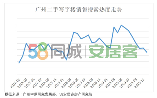 值得注意的是,58同城、安居客《2019年廣州寫字樓現(xiàn)狀報(bào)告》報(bào)告顯示,與核心商務(wù)區(qū)寫字樓吸納量大幅下滑形成對(duì)比,2019年廣州全市寫字樓線上搜索量?jī)H下滑6.1%,搜索總量逼近上海及深圳。這說明,廣州的中小企業(yè)活躍,寫字樓租賃需求有較好支撐,部分需求或受制于核心商務(wù)區(qū)較低的空置率未能釋放。