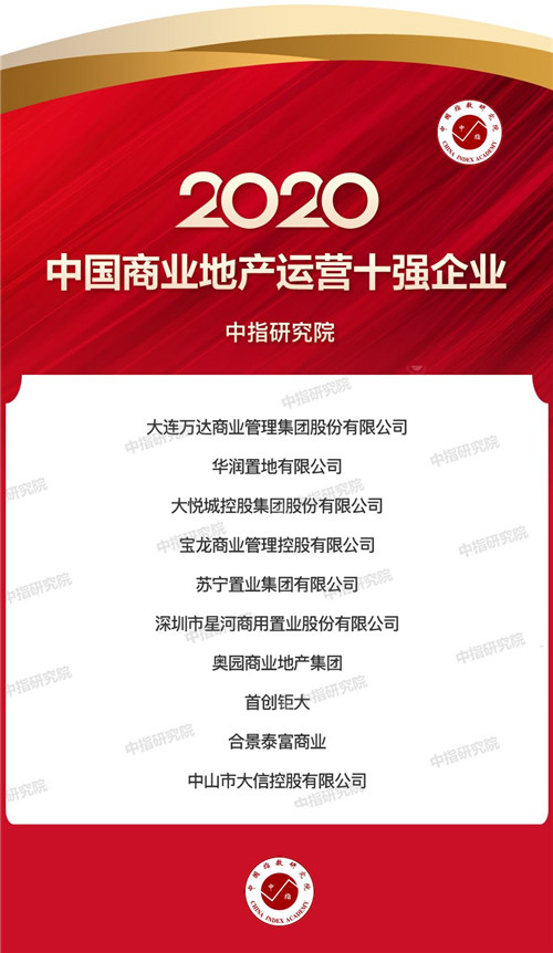 2020年,中指研究院結(jié)合在商業(yè)地產(chǎn)領(lǐng)域多年的研究積累與數(shù)據(jù)基礎(chǔ),啟動(dòng)“2020中國(guó)商業(yè)地產(chǎn)百?gòu)?qiáng)企業(yè)”研究,旨在發(fā)掘行業(yè)中綜合實(shí)力強(qiáng)、運(yùn)營(yíng)水平高、成長(zhǎng)潛力大的優(yōu)秀企業(yè)群體,鼓勵(lì)企業(yè)理性認(rèn)識(shí)商業(yè)地產(chǎn)市場(chǎng)發(fā)展現(xiàn)狀及規(guī)律,緊密跟蹤市場(chǎng)變動(dòng)趨勢(shì),在變革中積極創(chuàng)新謀發(fā)展,引領(lǐng)行業(yè)在新環(huán)境下實(shí)現(xiàn)持續(xù)、穩(wěn)健發(fā)展。